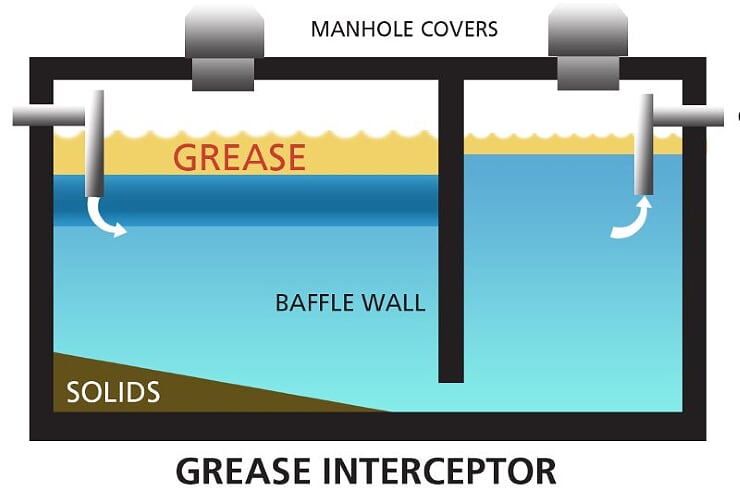 There is a big difference between an interceptor system and a basic grease trap. Although both serve the same purpose of trapping dangerous FOG before it reaches the sewer systems, they vary in their capacity and installation. Grease traps are small in size and are installed underneath your kitchen sink. On the other hand, grease interceptors can hold up to 4000 gallons of oil and are located underground outside of your kitchen. Understandably, grease interceptors have a higher installation cost than grease traps.